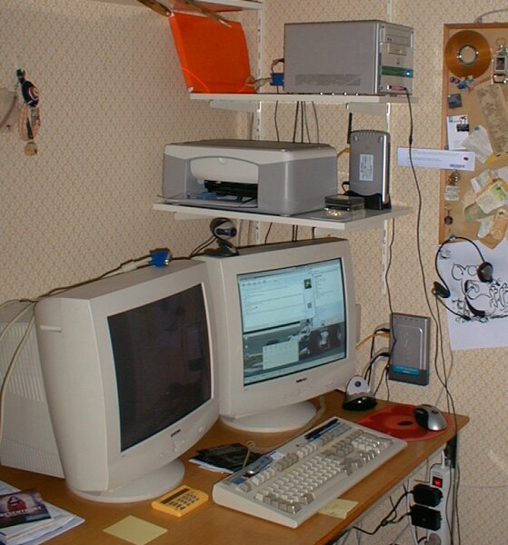 Shttle SK41G Athlon 2400+ Leadtek A6600 GT Dubbla 19" Nokia 920C HP PSC1110 skrivare/skanner Logitech MX700 trådlös mus. |
