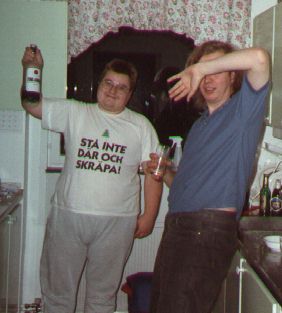 Rainer och Sylle letar efter dricka i köket.